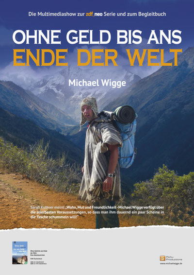 Seine Arbeiten zeichnen sich durch eine Mischung aus Journalismus und Unterhaltung aus. Sein Spezialgebiet sind Kulturthemen, die er unterhaltsam beleuchtet. Dafür wurde Michael Wigge mit zahlreichen Preisen ausgezeichnet. Im Sommer 2010 macht Wigge den unglaublichen Selbstversuch, innerhalb von 150 Tagen von Berlin an das Ende der Welt, also zur Antarktis zu reisen, ohne einen Pfennig Geld mit zu nehmen. Dieser spannende und teilweise dramatische Selbstversuch führt Wigge zu Freeganern, Obdachlosen, Zuhältern, Aussteigern, Amish Bauern und vielen weiteren Subkulturen. Auf der Reise lernt und zeigt Wigge wie jeder Tag damit gefüllt ist, Nahrung, Weiterreise und Unterkunft kostenlos zu bekommen. Er schläft in Scheunen und an Stränden, reist per Anhalter oder als blinder Passagier im Zug und erfragt sich seine Nahrung meistens in Geschäften, Cafés oder bekommt sie einfach aus Mülltonnen. Neben Höhepunkten wie sein Hawaiiaufenthalt und seine dortige Ernährung durch Blumen oder sein Job als Butler beim deutschen Botschafter in Panama, gibt es aber auch dramatische Tiefen: In Peru brennt das Haus seines Gastgebers ab. Kurz darauf bekommt Wigge in Bolivien nichts mehr zu Essen und muss durch ein erbetteltes Busticket zurück nach Peru, wo er erst nach zwei Tagen die erste Nahrung wieder zu sich nimmt. Die Reise steht kurz vor dem Abbruch. Doch durch seine Kreativität und stetigen Willen, das Projekt zu schaffen, findet er hier einen aller letzten Ausweg. Die Reise endet in der Antarktis, als Mitglied einer chilenischen Expedition Insgesamt reist Wigge 35 000 Kilometer durch vier Kontinente, elf Länder, schläft bei 40 verschiedenen Leuten, fragt in 500 Geschäften nach kostenloser Nahrung und trifft über 100 hilfsbereite und mitfühlende Menschen, die sich von seiner Idee anstecken lassen und ihm helfen. Die Reportage zeigt neben einer spannenden, persönlichen Überlebensgeschichte einen trotzdem humorvollen Protagonisten. Zusätzlich bringen fundierte Interviews von Menschen am Wegesrand, tolle Landschafts- und Portraitbilder und filmische Einspieler, Fakten über Land und Leute und ein Ratgeber, wie man ohne Geld reist, einen dokumentarischen Anspruch. Vor allem gibt die Reportage aber einen Einblick in eine Lebenssituation, die für unsere Wohlstandsgesellschaft nicht mehr vorstellbar ist. Die Videoserie wurde mehrfach im deutschen Fernsehen auf ZDFneo und auf PBS in den USA ausgestrahlt, mit dem Grimme Preis nominiert und als Buch erfolgreich mehr als 50 000 Mal in Deutschland, Südkorea und den USA verkauft. Michael Wigge lebt in Berlin und auf Hawaii. Weiter Informationen über ihn und seine Projekte finden Sie unter: